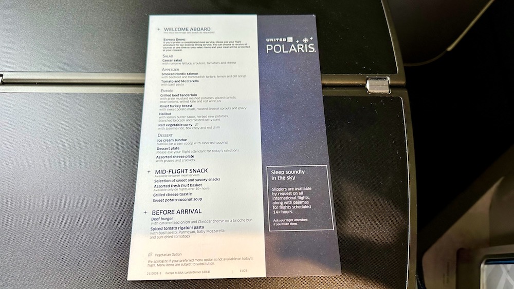 - Slippers are available on all flights, and customized United Polaris pajamas are available by request on flights longer than 14 hours.