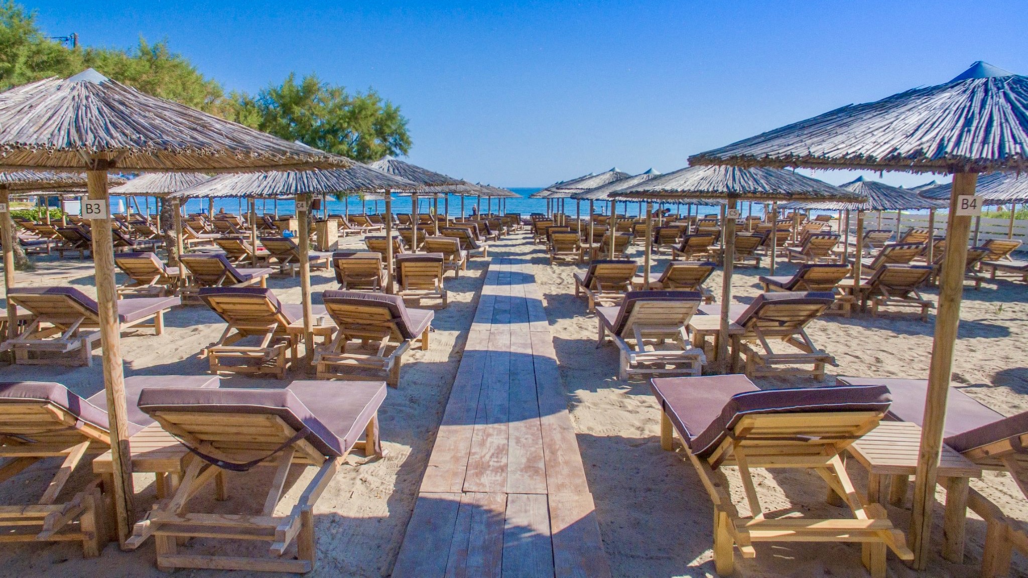 Zakynthos’ east coast town of Tsilivi features one of the island’s most popular (and unfortunately crowded) beaches. Awarded with the Blue Flag, the beach is mostly sandy with a few parts with small pebbles. The waters of Tsvili are shallow so they are safe for small children. The beach also offers a great variety of activities, including jet-ski, pedal boats, banana rides, parasailing, scuba diving, and so much more here. There are sunbeds and sun loungers in front of hotels and dozens of lively bars that offer an entertaining atmosphere. Tsilivi is also home to Seacret Beach Club, the island’s most upscale beach club. Under the tree shades and in the comfort of a gazebo, with the sea breeze blowing to keep things cool, guests can relax on sun loungers or in cabanas with the option of having a seaside massage or dining in the club’s restaurant.