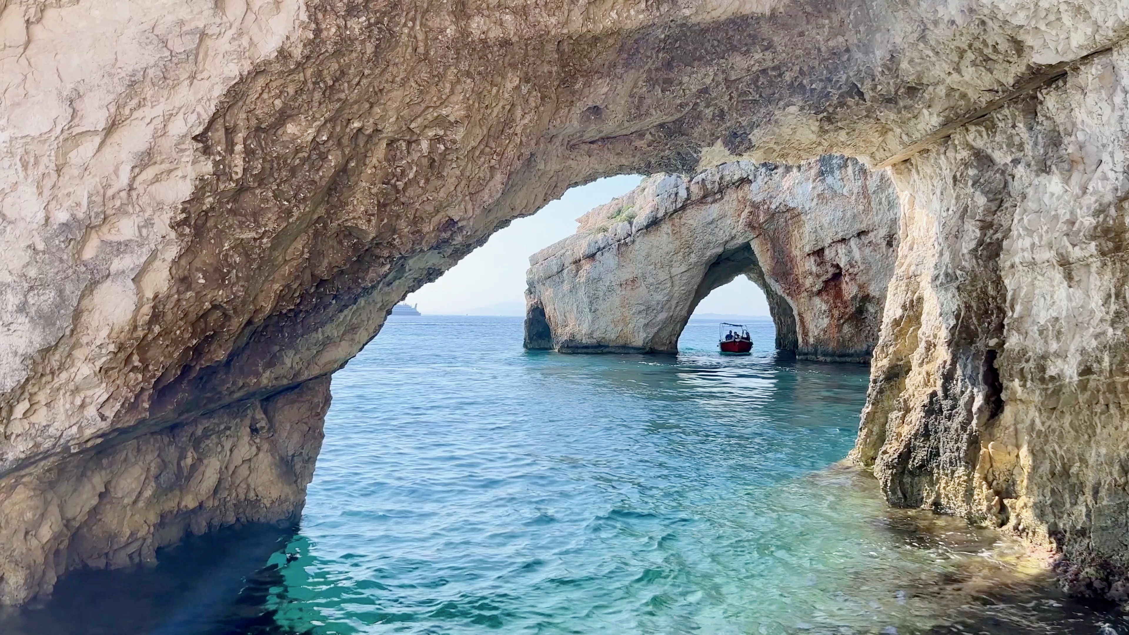 A journey to Zakynthos is never complete without an exploration of its famous coastal caves: the Blue Caves and Keri Caves. Situated on the northern tip of the island, near the port of Agios Nikolaos, the Blue Caves are a complex of natural arches and water-caves that have been cut out by tides over thousands of years. Their name is due to the particular reflections of the water in the caves. The Keri Caves are located on the southernmost tip of Zakynthos, where water and wind have transformed the limestone walls into a maze of caverns and natural gates hanging above the sea. Both cave complexes can be visited with a boat trip and some tour boats even sail under these stone arches (for your information, most boat tours to Navagio Beach will make a stopover at the Blue Caves).