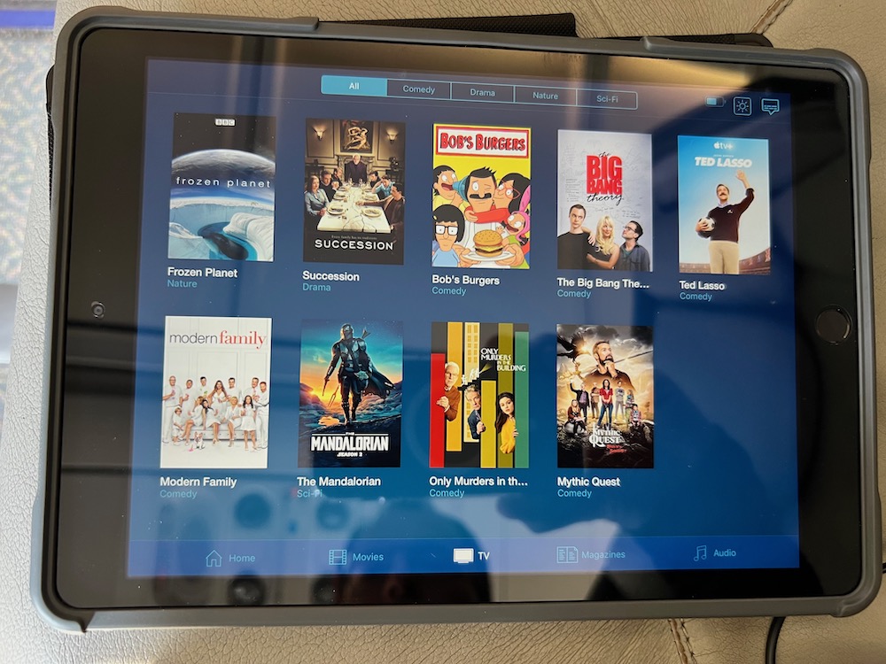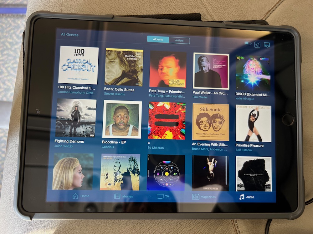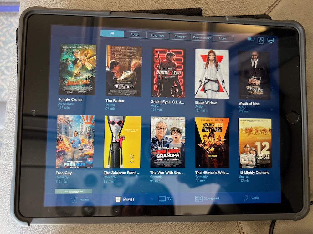 HOT TOWELA tablet was provided to each passenger (with a small selection of movies and documentaries) as well as noise cancelling headphones. The Airbus A340 was not equipped with WiFi.
