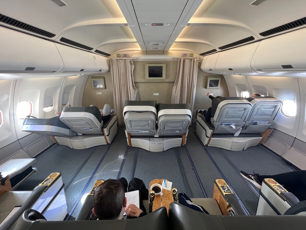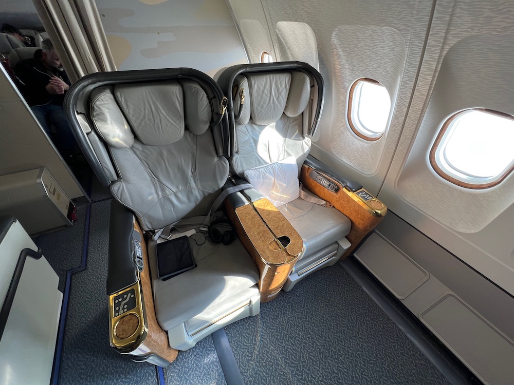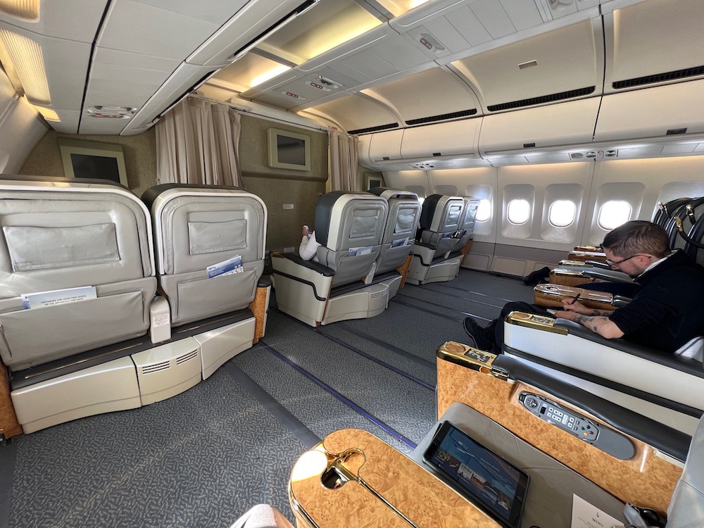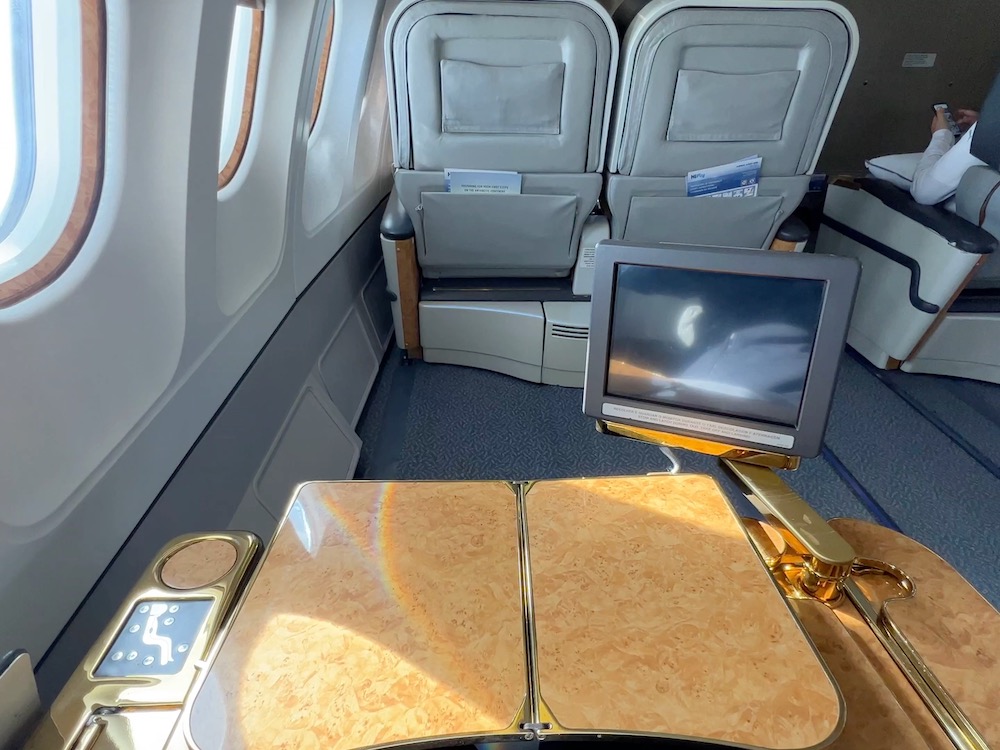 White Desert’s camp guests were seated in the First Class cabin, which still featured the old Emirates cabin design with lots of gold and wooden trims.