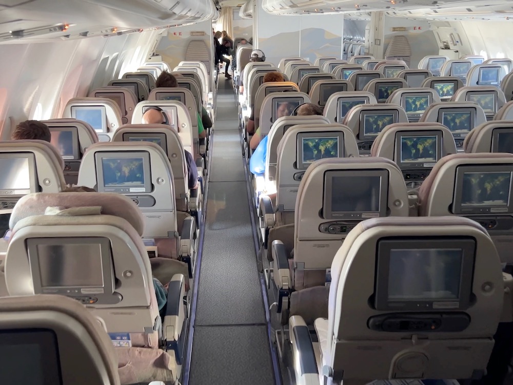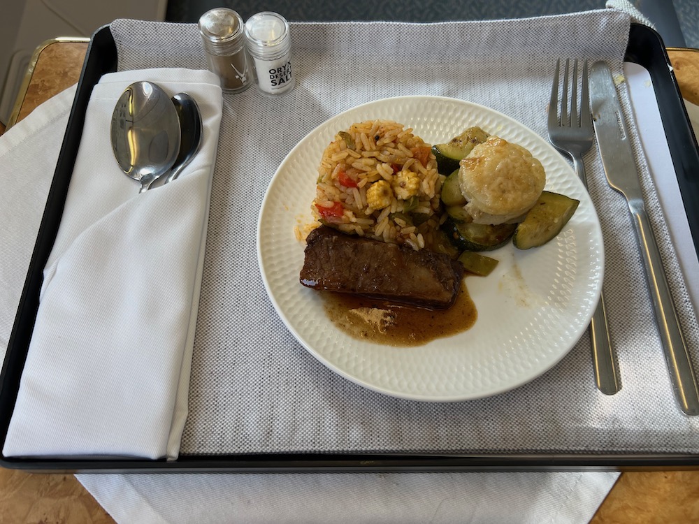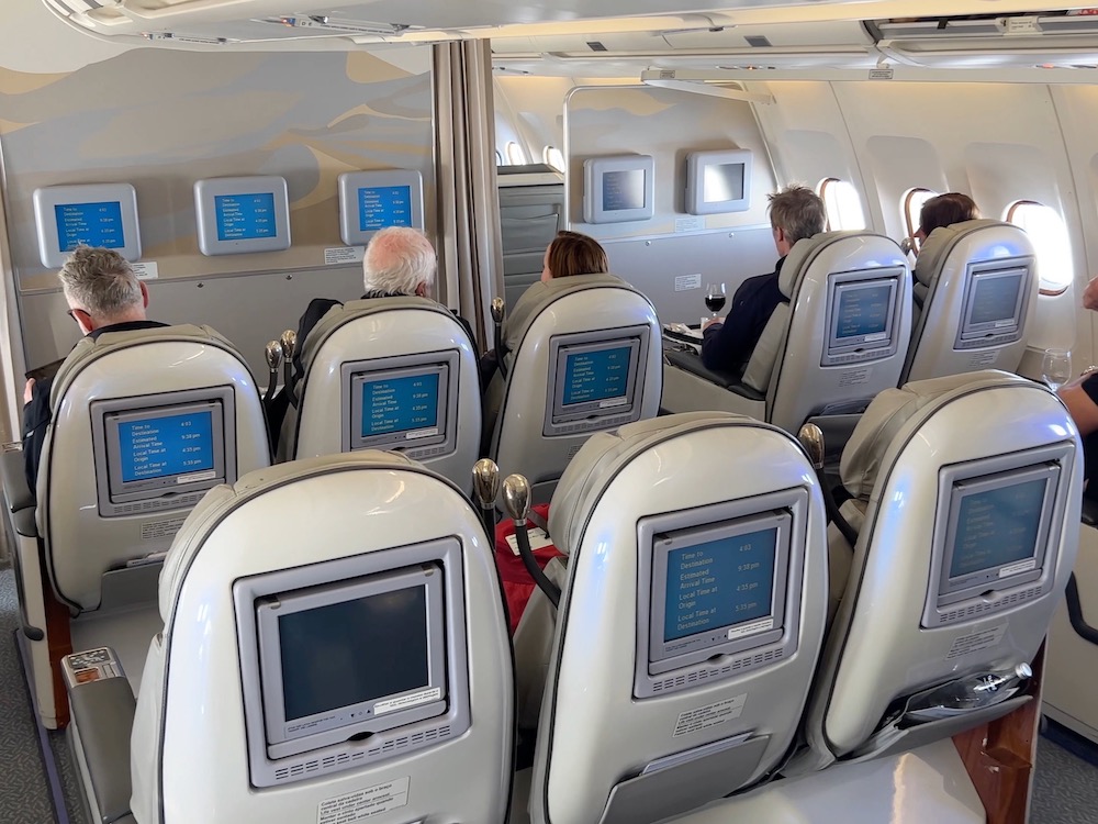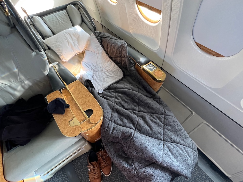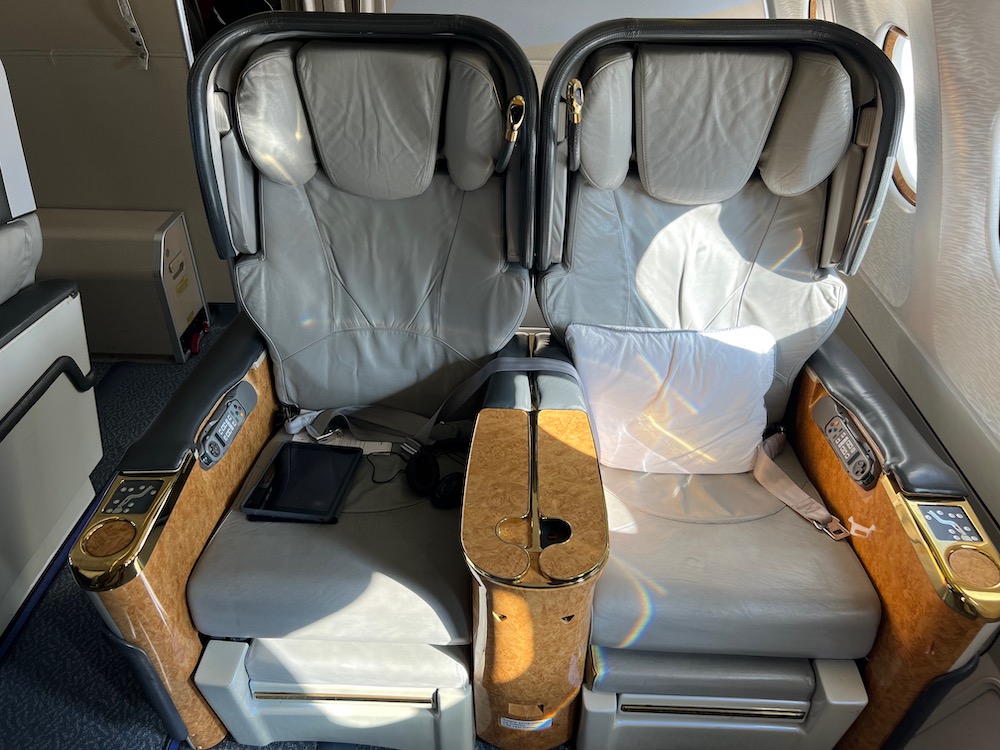 White Desert’s camp guests were seated in the First Class cabin, which still featured the old Emirates cabin design with lots of gold and wooden trims.