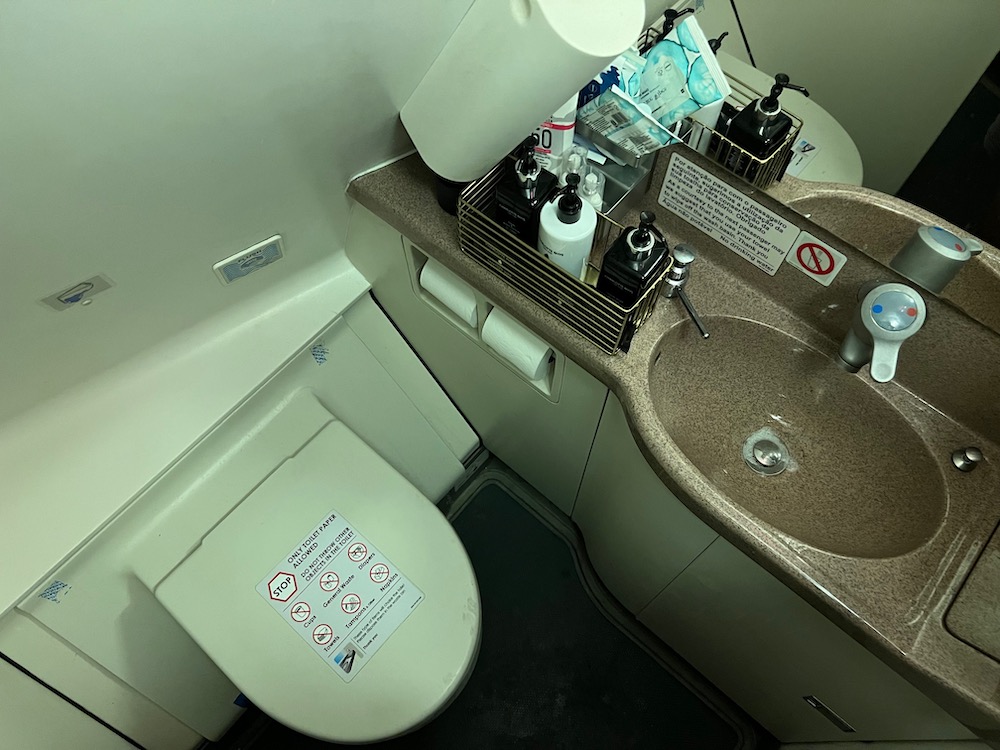 HI FLY AIRBUS A340 ECONOMY CLASSI also checked out the lavatories, which were equipped with Charlotte Rys toiletries (a South African luxury brand).