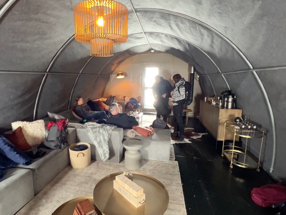 After an unforgettable week in the great outdoors of Antarctica’s Queen Maud Land, our time in the White Continent was coming to an end. The White Desert staff picked us up in a 4×4 Arctic truck and took us to Wolf’s Fang runway, a short 15 min drive through an otherworldly landscape. At Wolf’s Fang, a tented lounge – decorated in the style of the early explorers – was available, where we could wait a little while the plane was being loaded with cargo. The lounge provided a haven of comfort and warmth amidst Antarctica’s unforgiven climate.